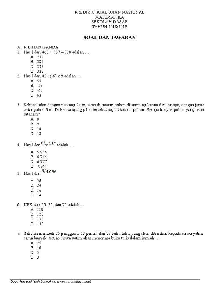 Makalah materi soal un sd matematika diterangkan mulai dari pelajaran sd, smp, atau sma plus min, mts, ma dan smk lengkap dengan contoh soal .